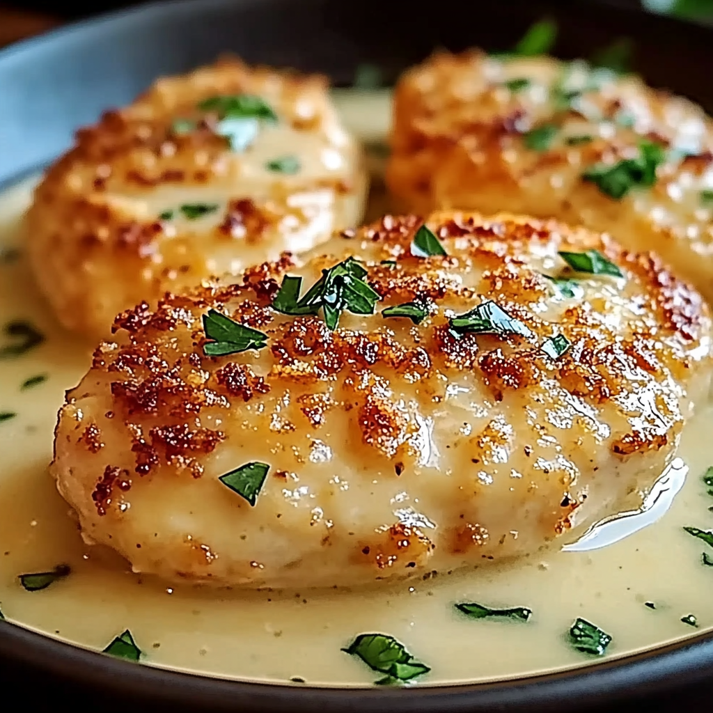 Savor the delectable flavors of Parmesan Crusted Chicken with Garlic Sauce. This dish features tender, juicy chicken breasts coated in a crunchy blend of Parmesan and breadcrumbs, baked to golden perfection. Drizzled with a fragrant garlic sauce, it’s an impressive yet easy meal ideal for weeknight dinners or special gatherings.
