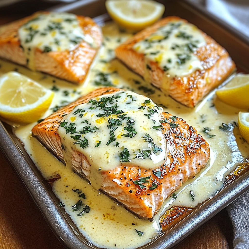 Easy Baked Salmon with Lemon Butter Cream Sauce