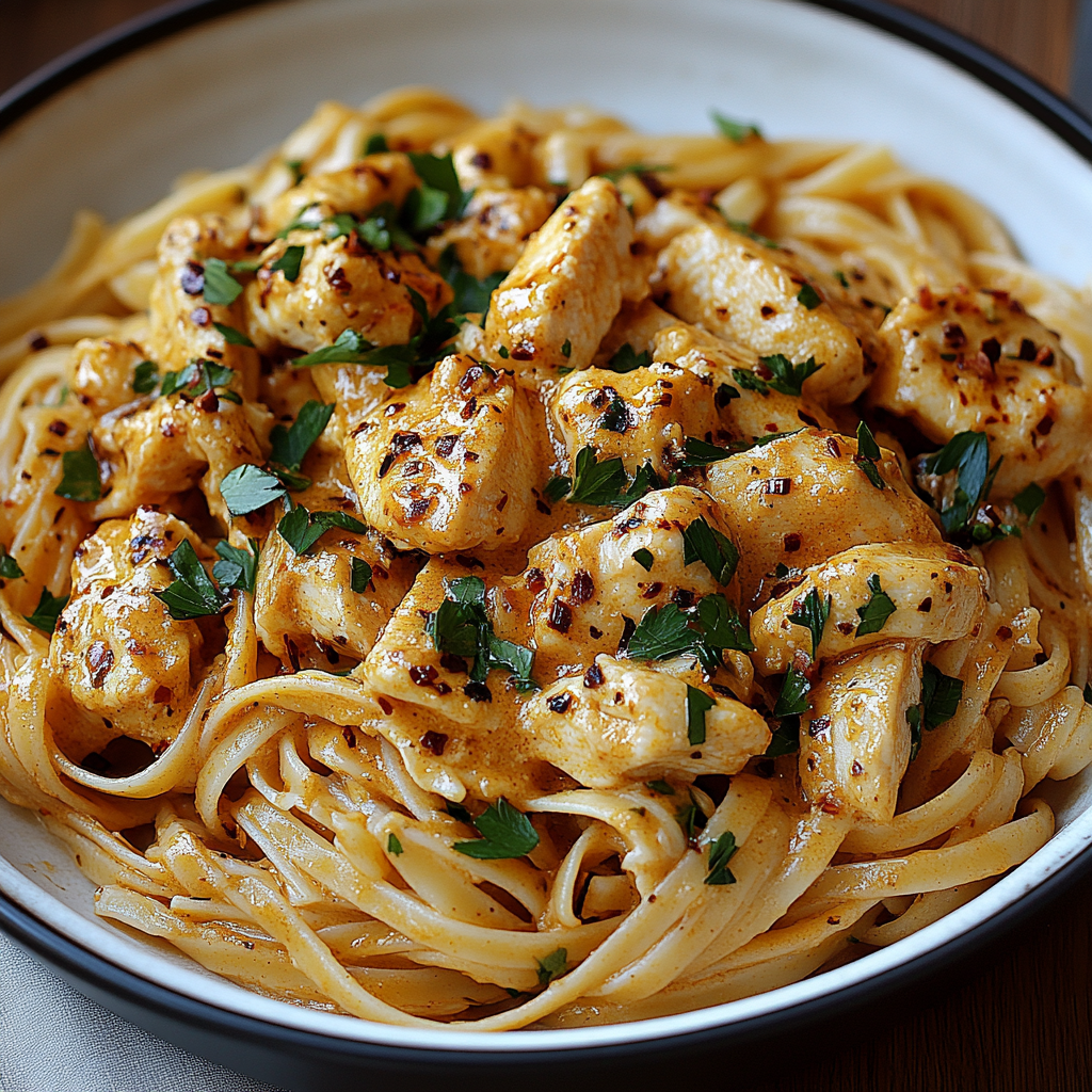 Cowboy Butter Chicken Linguine is a hearty and flavorful pasta dish that combines tender chicken with al dente linguine, all enveloped in a rich, buttery sauce infused with garlic and herbs. This crowd-pleaser is perfect for cozy family dinners or lively gatherings, offering a comforting taste that will leave everyone asking for seconds. With its vibrant presentation and ease of preparation, this recipe is sure to become a staple in your kitchen.