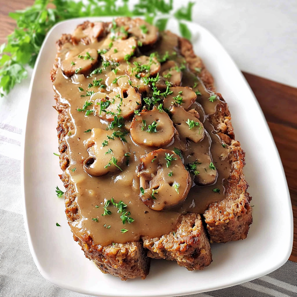 Once baked, let your meatloaf rest for about five minutes. Slice it up and drizzle with that luscious mushroom sauce before serving. This dish pairs wonderfully with mashed potatoes or steamed veggies!