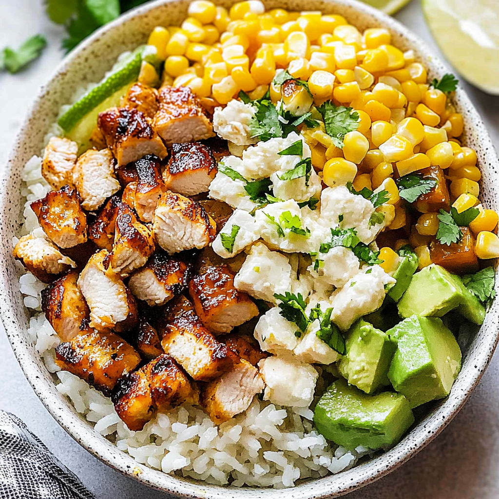 The Street Corn Chicken Rice Bowl offers a delightful blend of flavors and textures that will satisfy any craving. With tender chicken paired with fluffy rice and topped with the deliciousness of grilled corn and creamy sauce, this dish is both nutritious and filling. Its versatility allows you to customize it according to your taste preferences and dietary needs. Whether preparing it for family dinners or meal prepping for busy weeks ahead, this bowl will surely be a favorite in your kitchen. Enjoy every flavorful bite!