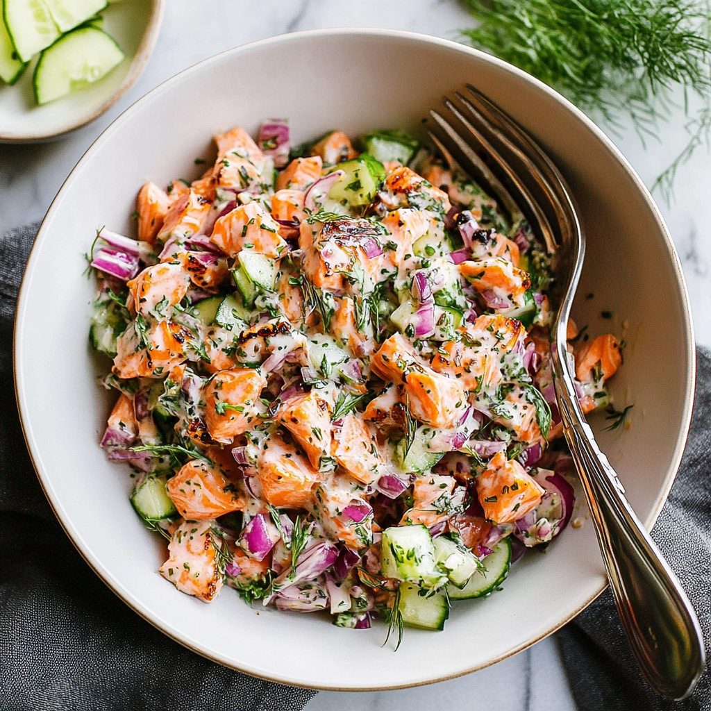 Salmon Salad is a refreshing and nutritious dish that combines tender salmon with crisp greens and vibrant vegetables. Perfect for a light lunch or dinner, this salad bursts with flavor from zesty dressing and fresh ingredients, making it an ideal choice for any occasion. Whether you’re hosting friends or enjoying a quiet meal at home, this Salmon Salad will surely impress.
