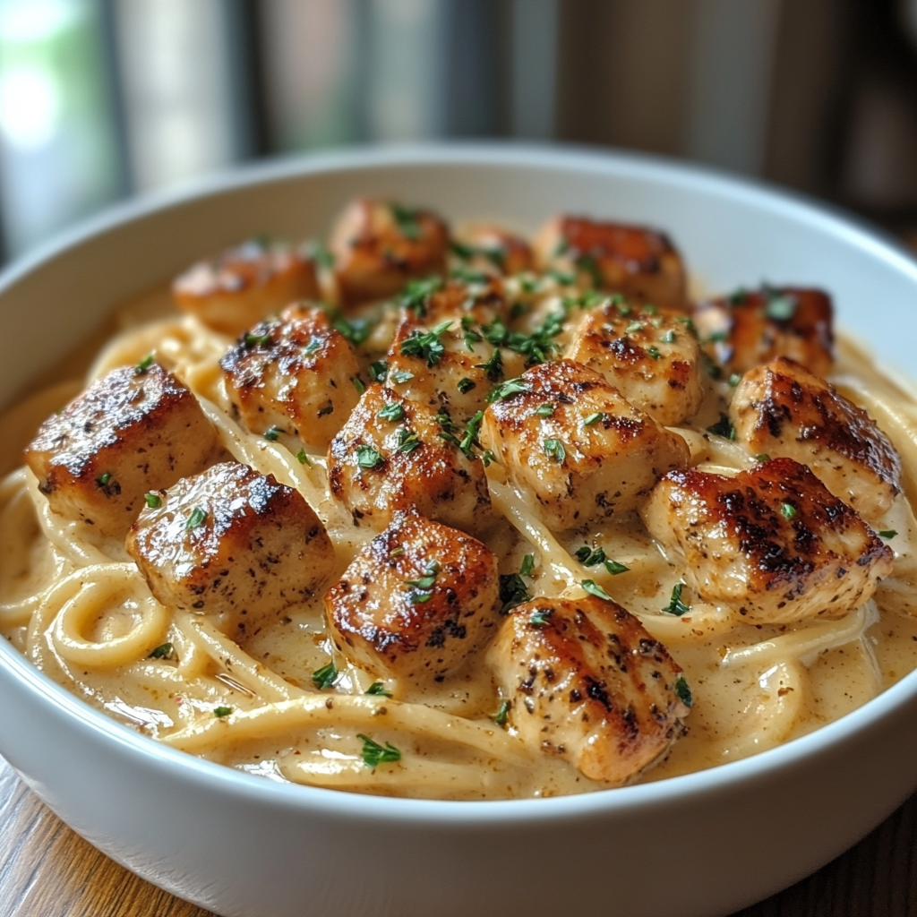 Blackened Chicken Alfredo is a creamy pasta dish featuring succulent chicken seasoned with a bold blend of spices. The chicken is blackened to create a flavorful crust, then served over fettuccine noodles coated in a rich, velvety Alfredo sauce. comforting chicken tenders This dish combines the comforting qualities of pasta with the zesty flavors of blackened chicken, making it a popular choice for dinner parties or family meals.
