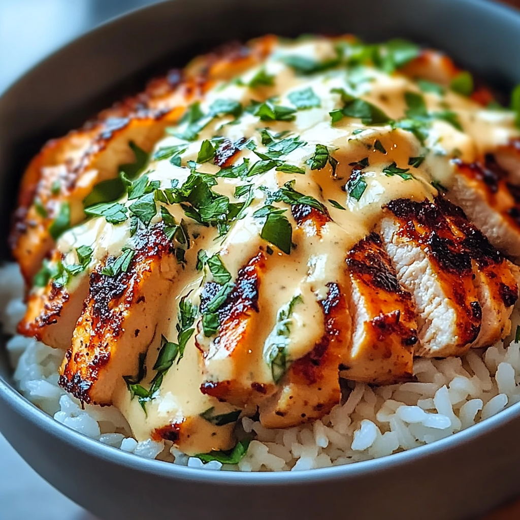Easy Chicken & Rice Bowls with Creamy Garlic Sauce is the ultimate comfort food, perfect for busy weeknights or cozy family dinners. This dish features tender, sautéed chicken served over fluffy long-grain rice, all topped with a rich and creamy garlic sauce that tantalizes your taste buds. Quick to prepare and highly customizable, this recipe is bound to become a staple in your kitchen.