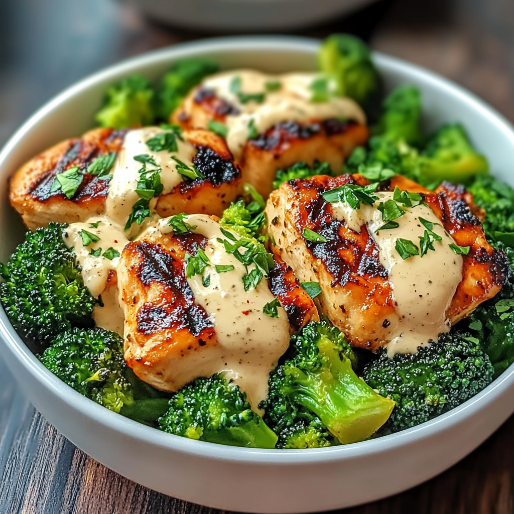 Grilled Chicken & Broccoli Bowls with Creamy Garlic Sauce offer a delightful symphony of flavors that dance on your palate. Imagine juicy chicken, perfectly grilled, mingling with vibrant broccoli, all enveloped in a creamy garlic sauce that beckons you for just one more bite. For more inspiration, check out this Air Fryer Parmesan Crusted Chicken recipe.