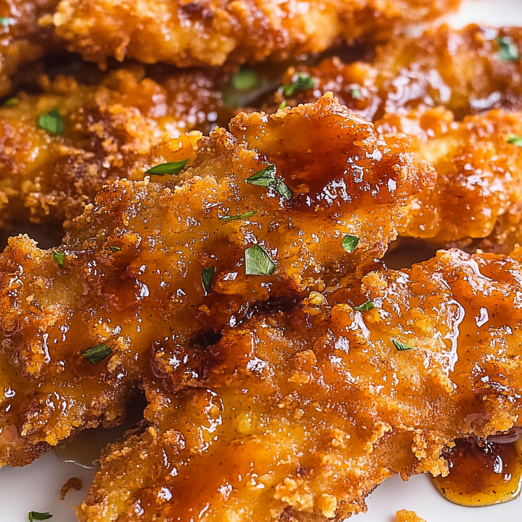 Keywords: - For added flavor, marinate chicken in hot honey sauce before coating. - Substitute maple syrup for honey or add sriracha for extra heat. - Store leftovers in an airtight container for up to three days and reheat at 350°F for best results.