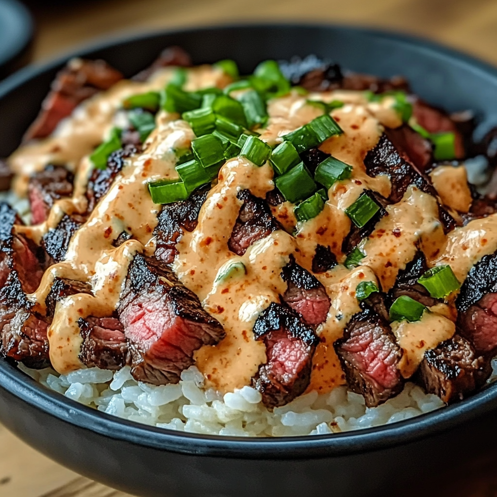 Korean BBQ Steak Rice Bowls with Spicy Cream Sauce