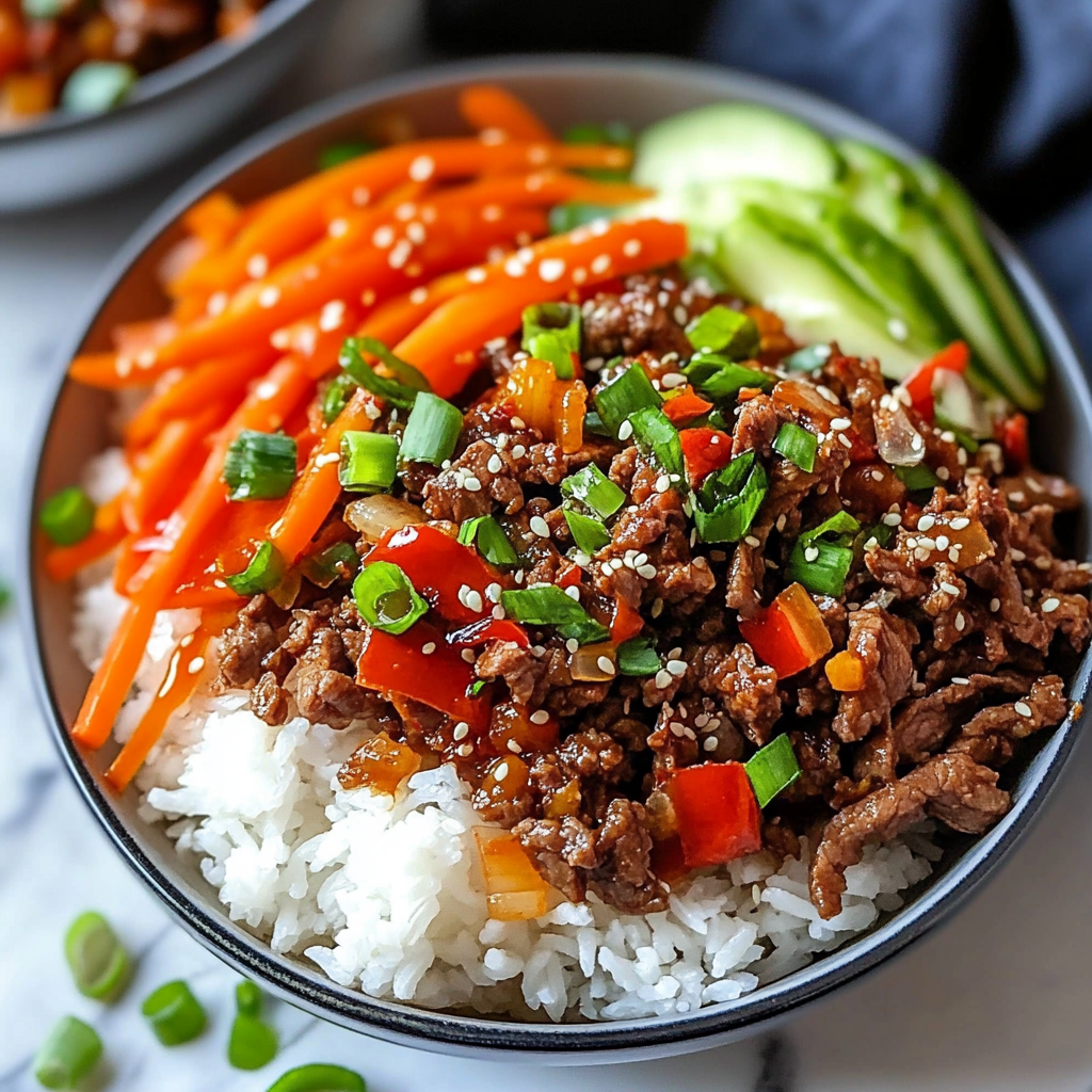 Korean Beef Bowl is a flavor-packed dish that combines tender ground beef with savory soy sauce, aromatic garlic, and zesty ginger, all served over a bed of fluffy rice. This easy-to-make recipe captures the essence of Korean cuisine, making it perfect for weeknight dinners or special gatherings. The vibrant colors and textures will not only please your palate but also impress your guests. Customize it with your favorite vegetables or toppings to create a meal that suits any taste preference.