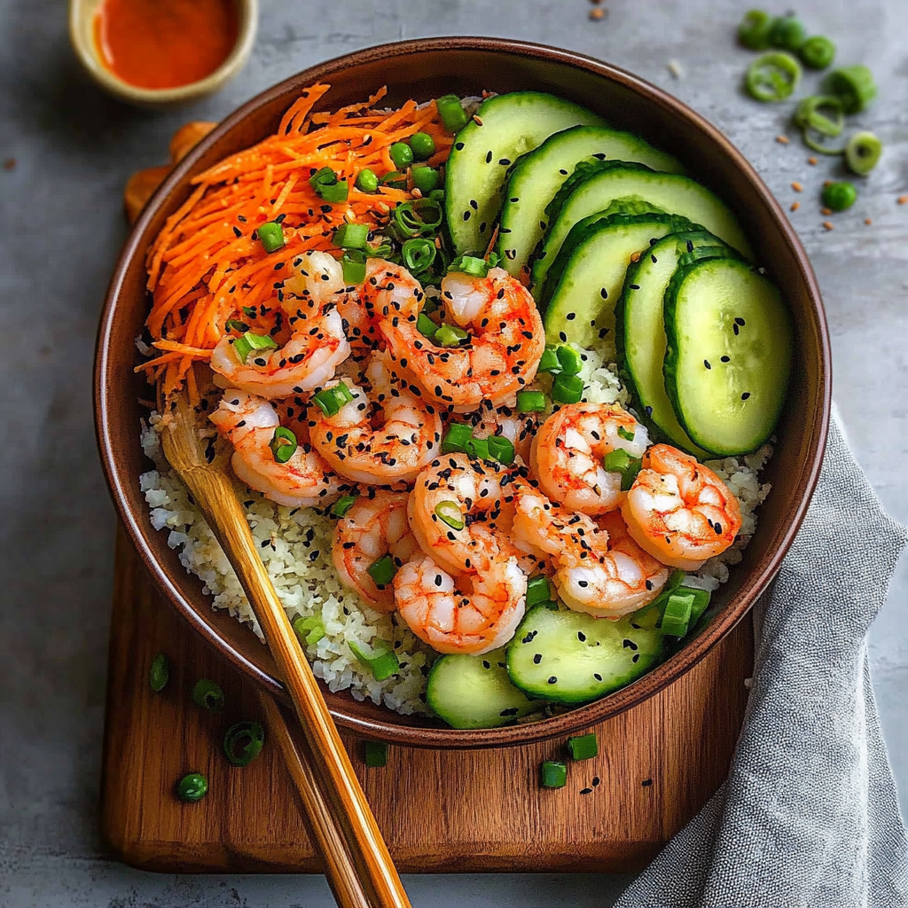 When life hands you a cauliflower, don’t just throw it in the corner of your fridge and forget about it! Instead, turn it into something magical like Shrimp Sushi Bowls With Cauliflower Rice. Picture this: fresh shrimp marinated in a zesty concoction, nestled atop fluffy cauliflower rice, accompanied by vibrant veggies and a splash of soy sauce. It’s a dish that’s as pleasing to the eyes as it is to the palate! For more inspiration, check out this Shrimp Scampi Recipe recipe.Now, I can’t help but reminisce about those sweltering summer days when my friends and I would gather around for a picnic. We’d whip up our favorite sushi bowls, each person adding their twist. Little did we know that we were creating memories sprinkled with laughter and flavor explosions. Whether it’s a casual weeknight dinner or an elegant gathering, this recipe promises to be the star of the show [ love_box title=”Why You’ll Love This Recipe”] This dish is quick to prepare, making it perfect for busy weeknights. The delightful combination of flavors creates an unforgettable taste experience. Its colorful presentation will wow your guests and elevate any occasion. Versatile enough for meal prep or entertaining, it’s a crowd-pleaser for all palates! [/love_box]