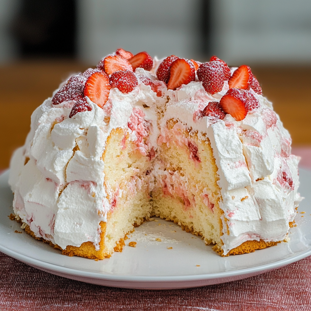 Strawberry Angel Cake brings nostalgia alongside deliciousness; enjoy every moment as you savor each bite!