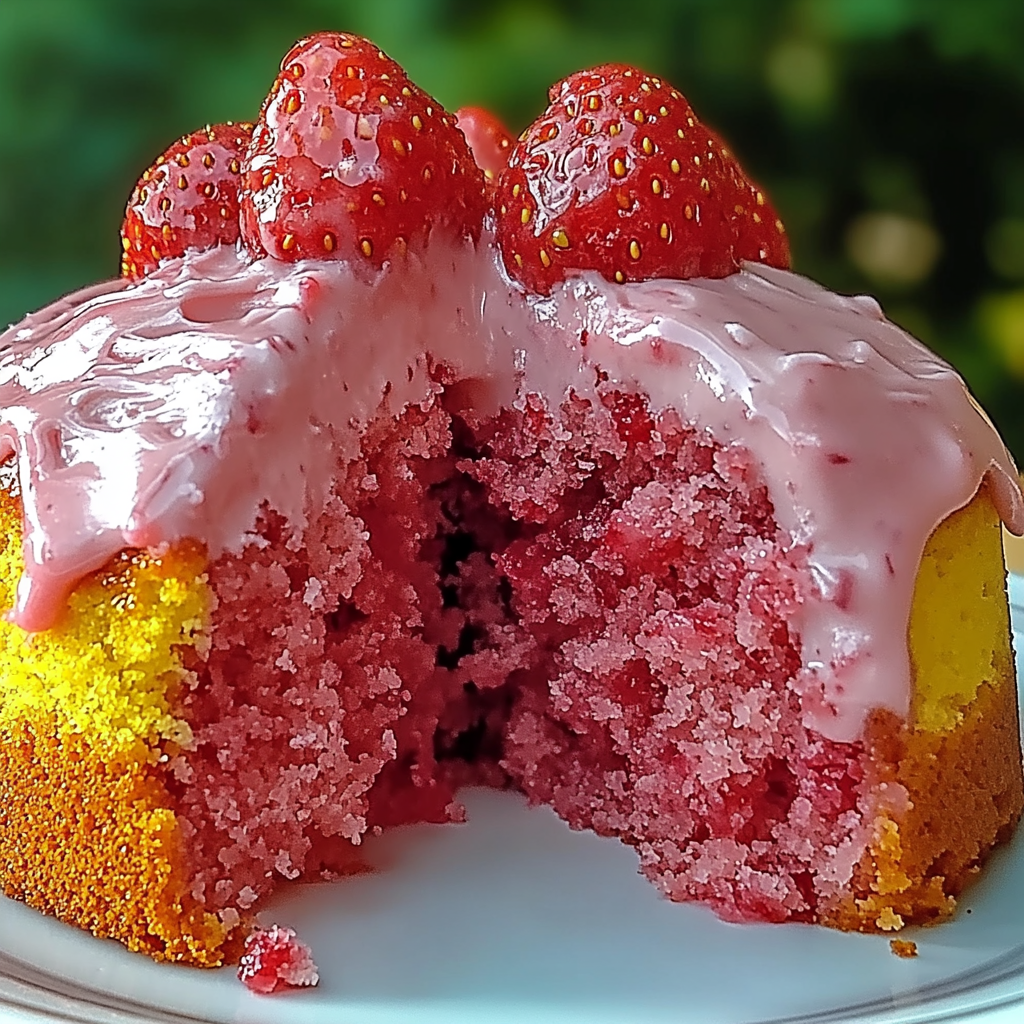 Start by preparing the cake batter first. While it bakes, whip up the creamy strawberry icing. Once the cake cools, you can glaze it with icing for a flawless finish.