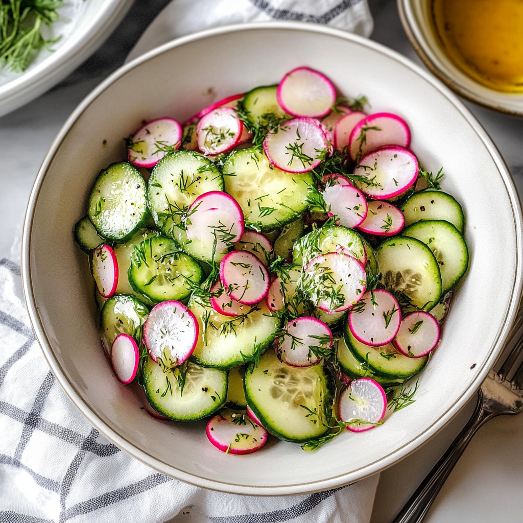 Begin by preparing all your ingredients first. Slice the cucumbers and radishes, then mix them with the dressing. Toss everything together just before serving for maximum crunchiness.
