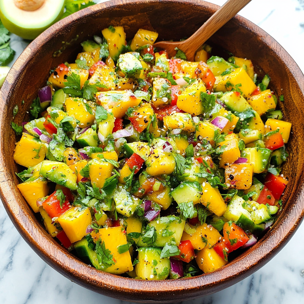 Start by gathering all your ingredients before slicing the mangoes, cucumbers, and peppers. Assemble the salad while preparing the dressing to keep things efficient. Toss everything together right before serving for maximum freshness and flavor.